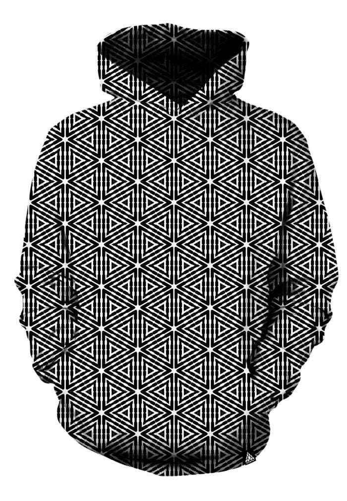 Our all-over print pull over hoodies are made of a premium soft-spun polyester that is silky smooth to the touch. Our printing process ensures that the design will never fade, crack or wrinkle. Each hoodie is made to order and can take 7-10 days to create before it ships. These hoodies are perfect for warming up before or after a rave.