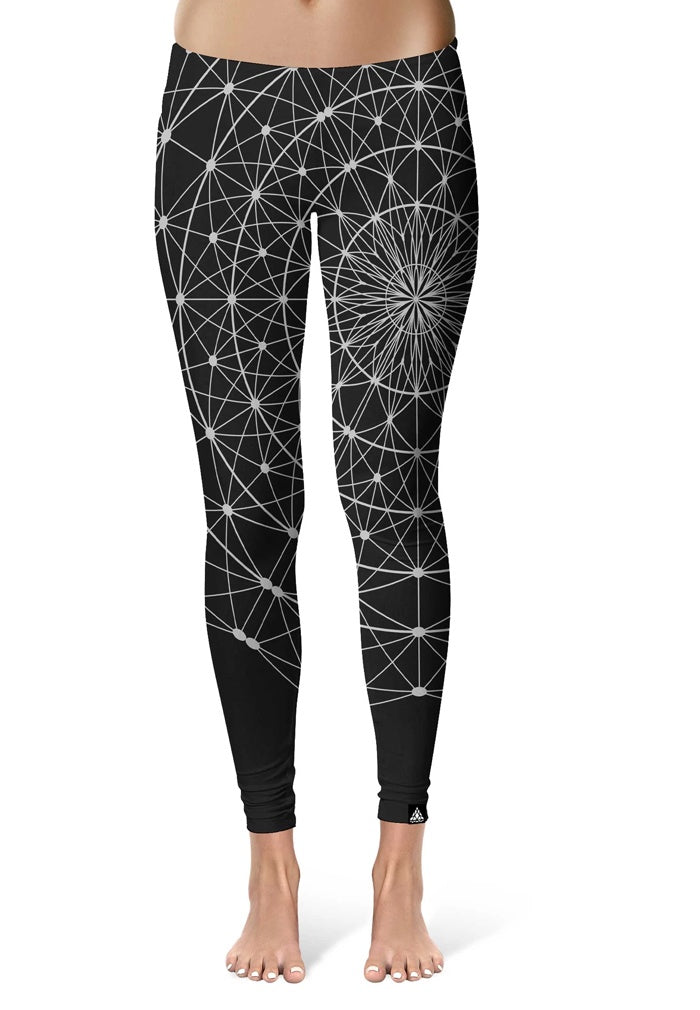 These black yoga leggings feature and incredible print inspired by your favorite sacred geometry. These leggings feature a lot of stretch and are super comfortable for every day wear. Whether you're dancing your face off on the festival mainstage or doing downward dog on the beach in Malibu these leggings will quickly become your favorite. These provide great solid coverage!